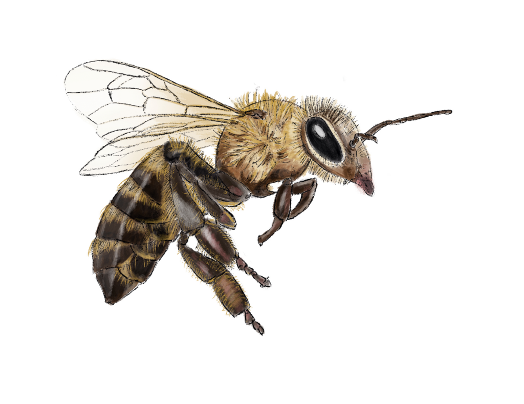 Honigbienen bestäuben Blumen, Bäume und Pflanzen und machen Honig für uns Menschen. Sie leben in großen Gruppen mit einer Königin, Arbeiterbienen und Drohnen. Honigbienen sind wichtig für die Landwirtschaft.