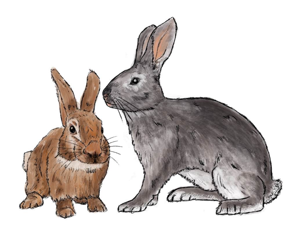 Kaninchen leben in unterirdischen Bauten und sind gesellige Tiere. Sie fressen Pflanzen wie Gras und Rinde von jungen Bäumen. Kaninchen vermehren sich schnell und leben oft in großen Gruppen.