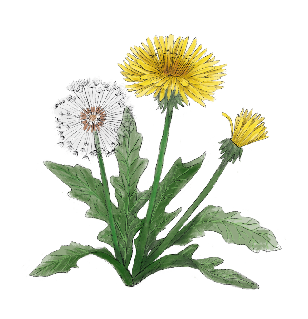 Löwenzahn hat leuchtend gelbe Blüten und wächst auf Wiesen, in Gärten oder an Straßenrändern. Er ist bekannt für seine heilenden Eigenschaften, und seine Samen fliegen mit dem Wind davon.