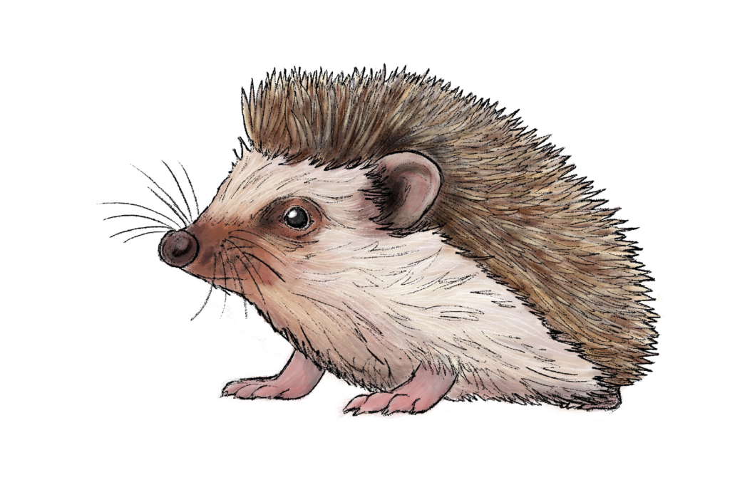 Igel sind nachtaktive Tiere, die Insekten wie Käfer und Würmer fressen. Sie leben in Gärten, Wäldern und Hecken und verstecken sich oft in Laubhaufen vor Feinden. Wenn sie sich bedroht fühlen, rollen sie sich zu einer Kugel zusammen.