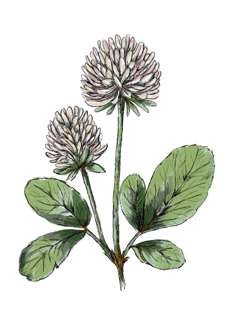 Weißklee wächst oft auf Wiesen und in Gärten. Er hat weiße Blüten und hilft dem Boden durch das Fixieren von Stickstoff.